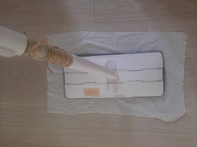 | ▲ 10번째 재사용 중인 물티슈. 방바닥 청소에 활용한다. 밀대도 망가진 걸 고쳐 재사용중이다. |