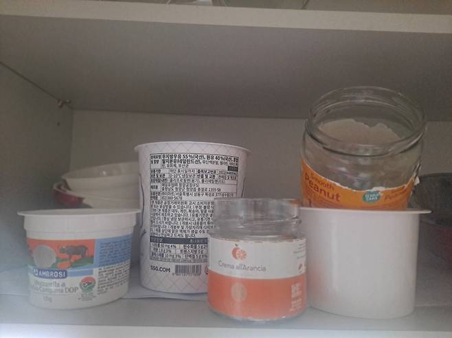 지금은 요구르트를 만들어 먹지만 예전 한창 사서 먹었을 때 버리지 못하고 끌어안고 지내는 용기들을 아직도 나의 선반이나 냉장고 안 반찬통으로 유용하게 써먹고 있다.