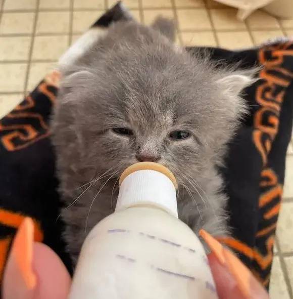 길가에서 작은 잿빛 털 뭉치를 발견한 한 네티즌은 가까이 다가가 그것이 매우 허약한 아기 고양이라는 것을 알게 되었습니다. 네티즌은 즉시 고양이를 동물 병원으로 데려갔습니다. 태어난 지 2주 정도 되어 보이는 아기 고양이는 매우 연약했고, 24시간 보살핌이 절실히 필요한 상태였습니다.