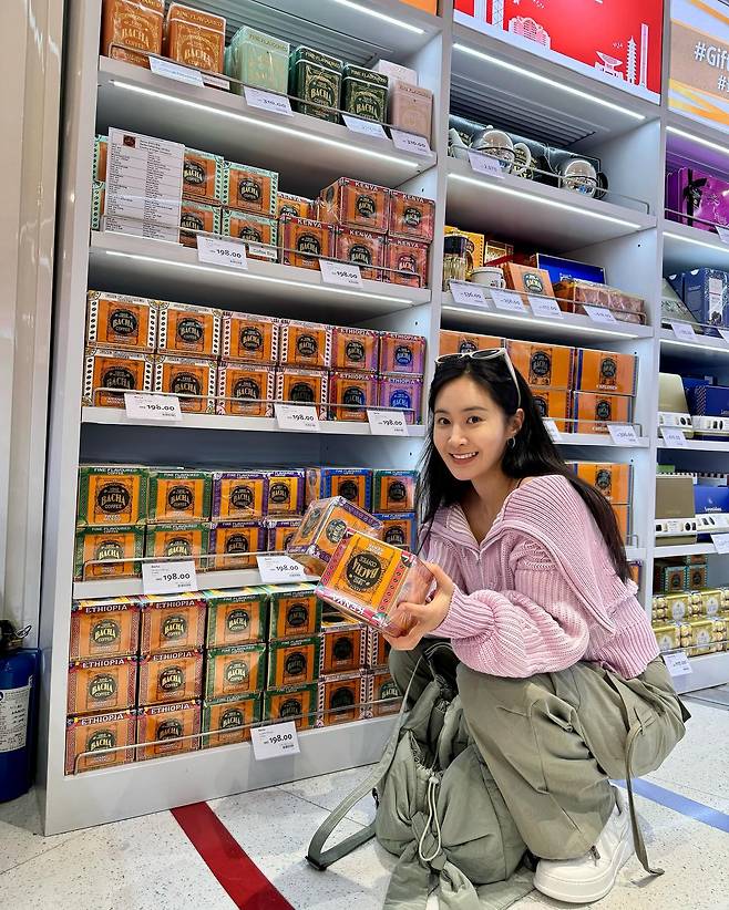 소녀시대 유리는 핑크 가디건에 카키 컬러 팬츠로 힙하게 패션을 마무리!