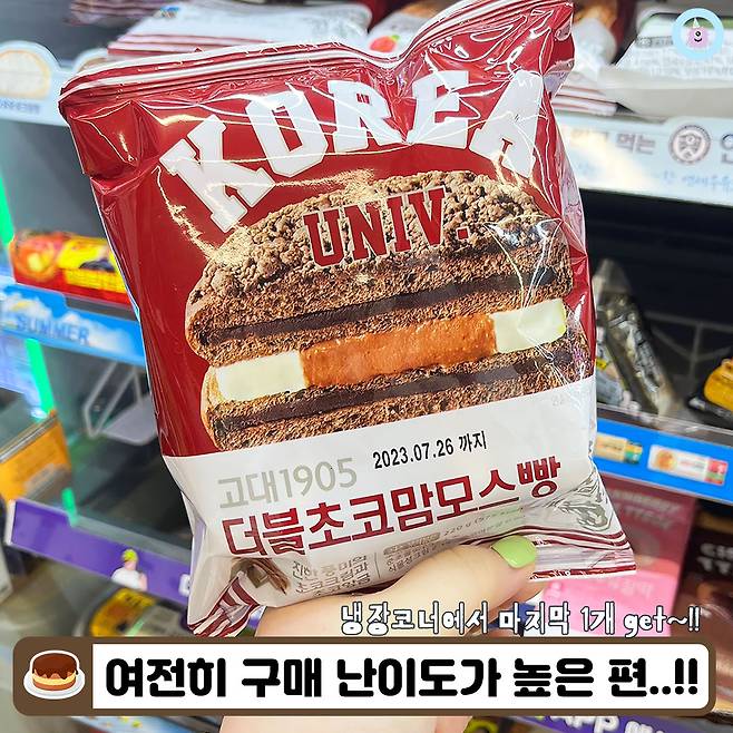 곧바로 뛰어가서 냉장코너에 마지막으로 남은 한 개를 겟할 수 있었어요! 편의점 연고전이 달아오른지 꽤 지난 것 같은데 여전히 구매 난이도가 상당히 높은 편이었어요.