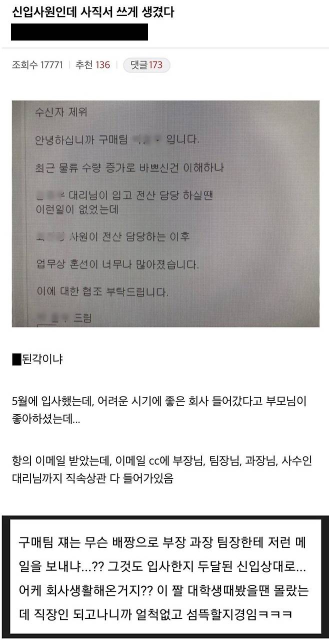 입사 2달 된 신입사원 상대로 저런 업무 메일을 보낸다고..?