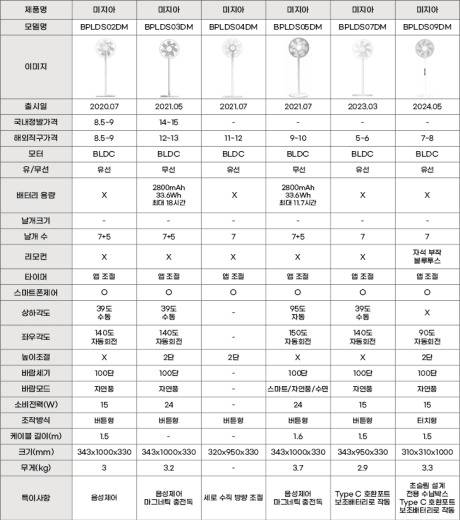 두 브랜드에선 거의 매년 새로운 선풍기를 출시하고 있는데요. 어떤 차이가 있는지, 가격차이는 어떤지 깔끔하게 정리해 보겠습니다.