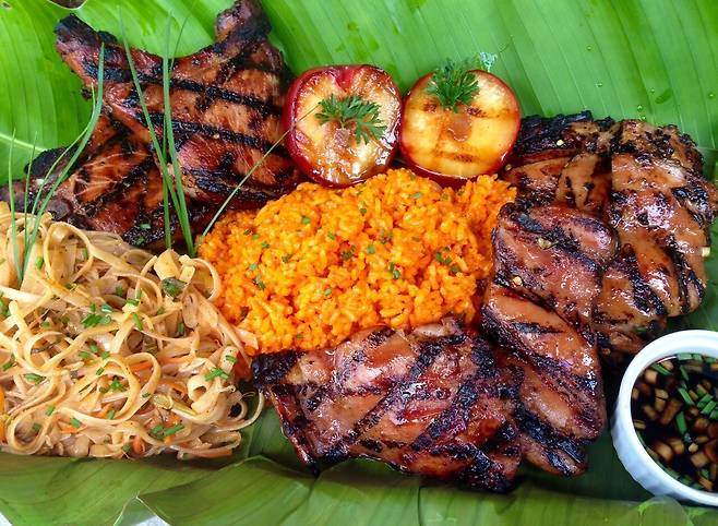 다양한 종류의 바비큐 꼬치와, 생선구이 그리고 켈라구엔과 같은 괌 전통 음식을 쉽게 맛볼 수 있다.