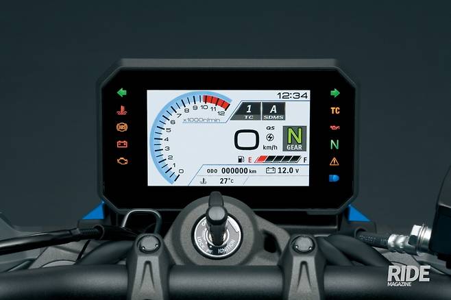 컬러 TFT LCD 다기능 계기판은 어느 상황에서도 명확하게 읽을 수 있는 높은 가독성을 자랑한다. 주행 중에도 라이더는 모터사이클의 모든 시스템의 작동상황을 쉽게 인식할 수 있다. 디지털 엔진 회전계와 쉬프트 타이밍 램프, 유용한 팝업 메시지 기능과 낮(흰색)과 밤(검은색)에 자동 혹은 수동으로 배경색을 바꿔줘 주변환경에 따른 가독성을 높였다.