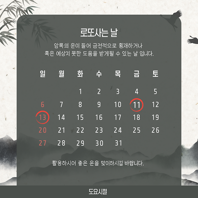 이 달에는 문제가 있다면 직접 해결하려 하지 말고, 흘려보내는 마음이 지혜롭습니다. 오해나 감정의 충돌은 당장 이 시기에 해결하기보다 차라리 서로간 거리를 두는 것이 더 낫습니다. 지금 당장 감정에 휘둘리면, 평생 남을 상처로 번지기 쉽습니다. 중요한 감정적 대화, 결단은 가급적 다음으로 미루는 것이 유리합니다.