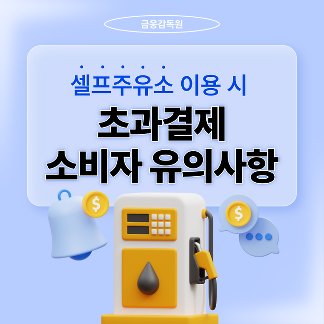 고유가 시대를 이유로 셀프주유소를 자주 이용하게 됩니다. 대부분 유류비를 결제할 때 신용카드를 이용하고, 자세히 명세서를 살펴보지 않고 버리게 됩니다. 하지만 앞으로 이 명세서를 그냥 버려서는 안 될 것 같습니다. 금융감독원과 여신금융협회는 셀프주유소에서 카드결제 시 발생할 수 있는 초과 결제와 관련한 소비자 유의사항에 대해서 안내하고 나섰습니다. 고속도로 휴게소 내의 셀프주유소에서만 발생한 초과 결제 관련 오류건이 해마다 증가하고 있고, 그 금액은 23억 원 정도라고 한국도로공사에서 발표하기도 했습니다.