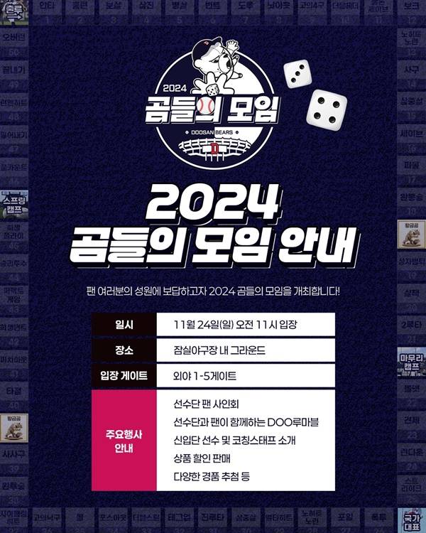 두산 베어스가 오는 24일 오전 11시 잠실야구장에서 '2024 곰들의 모임'을 개최한다.