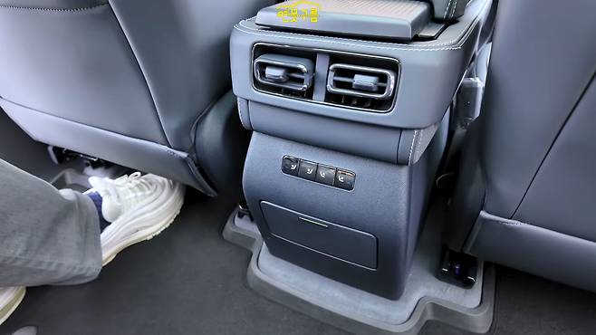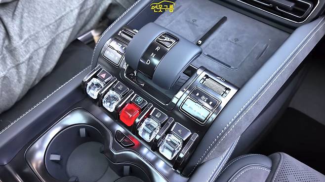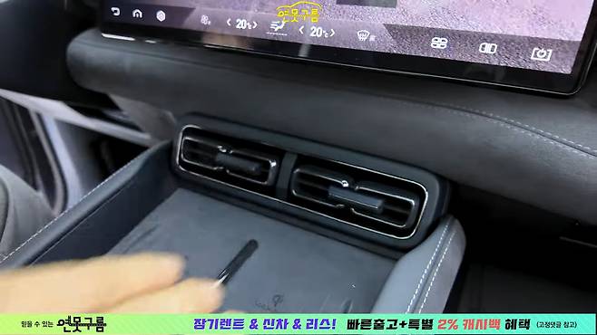 센터 디스플레이 하단에는 송풍구가 위치하며, 50W 규격의 스마트폰 충전 기능과 전동식 기어 노브는 사용자 편의성을 고려한 요소이다.