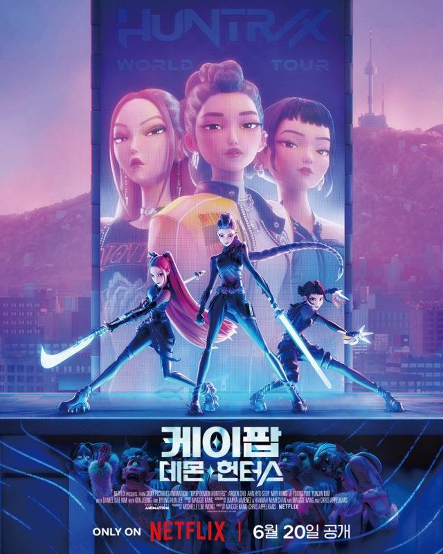 첫인상은 ‘이게 대체 무슨 영화야’ 였습니다. 미국 할리우드 메이저 스튜디오인 소니 픽처스 애니메이션에서 만드는 ‘K-팝’ 영화라니요. 게다가 3인조 K-팝 걸그룹 헌트릭스가 실은 악귀를 때려잡는 데몬 헌터였고 심지어 악귀들도 5인조 남성 아이돌을 결성해 맞대결을 펼친답니다. 실소가 절로 나왔죠. 2021년 제작 발표 이후 별다른 정보도 없어 존재감이 사라졌죠.