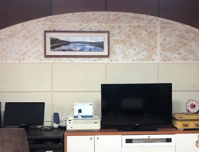 문제는 걸어둔 액자의 무게를 버티지 못하고 석고보드가 떨어졌고,