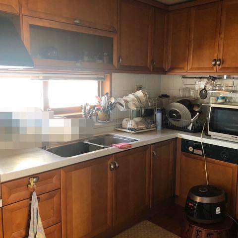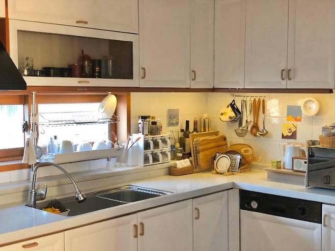 10년이 넘는 세월의 흔적과, 5인 가구의 살림살이가 가득 차 있던 주방이에요.