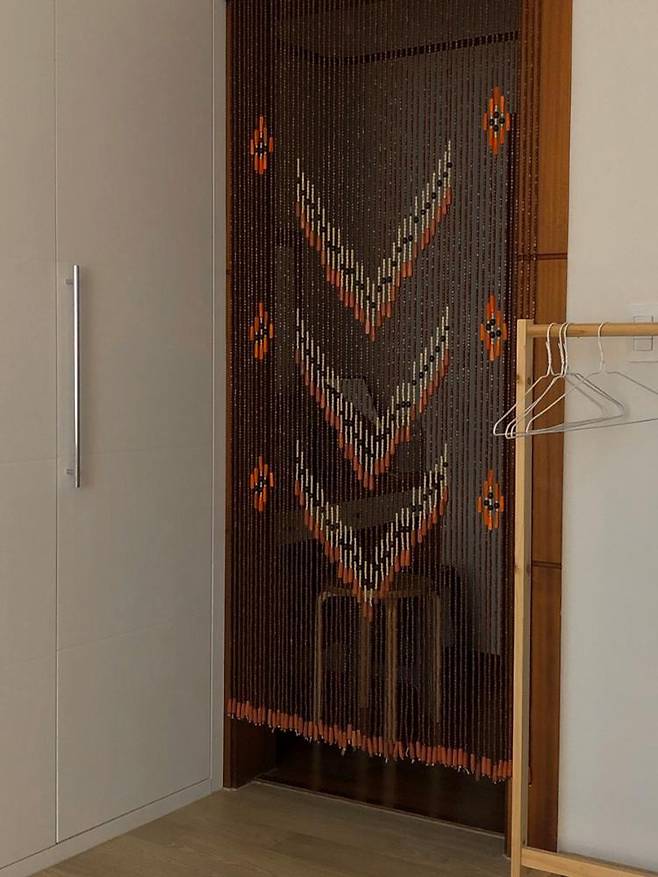 침실 화장실에는 창문이 없어 환기를 위해 문을 자주 열어두는데 가끔 거슬릴 때가 있어 문발을 달았어요.