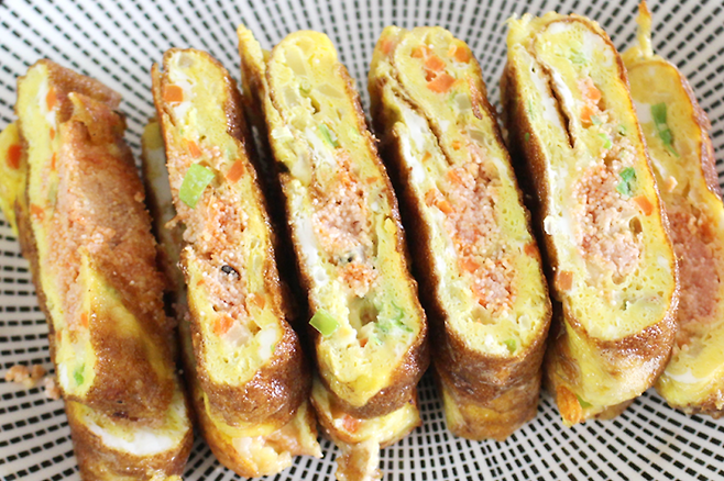 아이도 어른도 좋아해요. 부드럽고 노릇하게 부친 계란을 돌돌 말아낸 그 맛! 별다른 재료 없어도 밥 한 공기 순삭입니다.