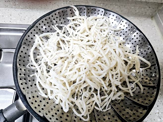▶ 진미채를 찜기에 3-4분 살짝 찌세요