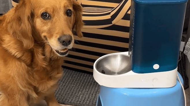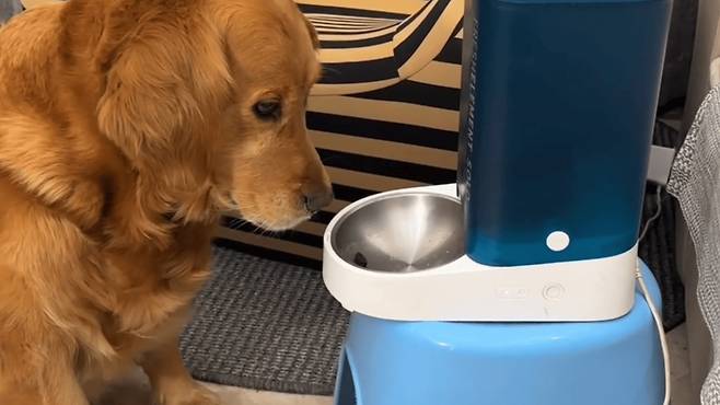 하지만 기대와 달리, 급식기에서는 딱 한 알의 사료만 툭 하고 떨어졌습니다. 순간 강아지의 신나던 표정이 굳어지고, 입을 떡 벌린 채 그 한 알을 멍하니 바라보다가 주인을 쳐다봤다니, 그 표정이 눈앞에 선해서 웃음이 터져 나옵니다.