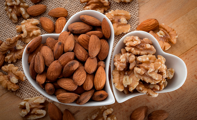 아몬드는 28g당 약 6g의 단백질을 함유하고 있어 달걀과 비슷한 수준의 단백질을 제공한다. 뿐만 아니라 비타민 E와 마그네슘이 풍부하여 항산화 효과와 심장 건강에 도움을 준다.