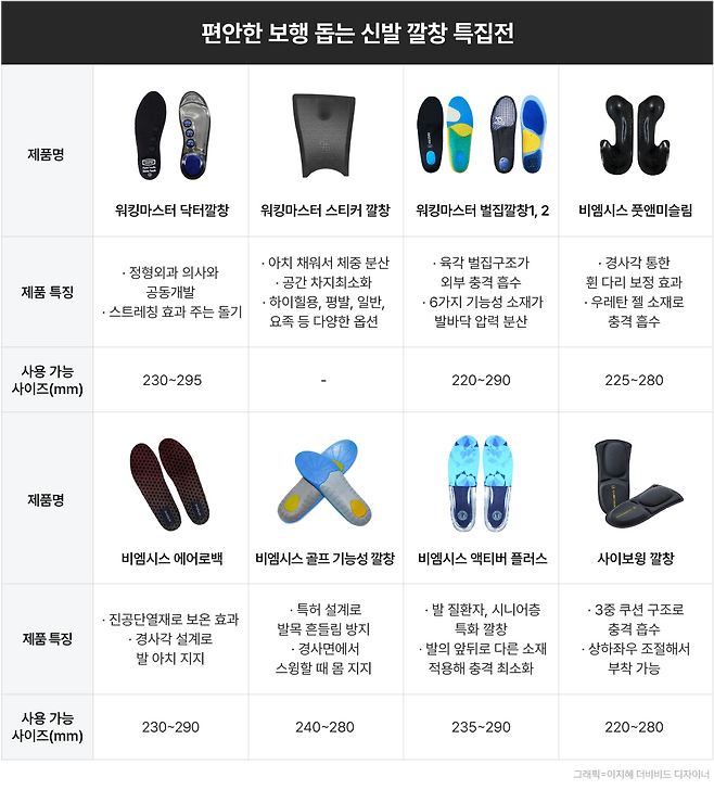 ◇발 아치 지지해 무게 분산, 공간 차지 적은 깔창