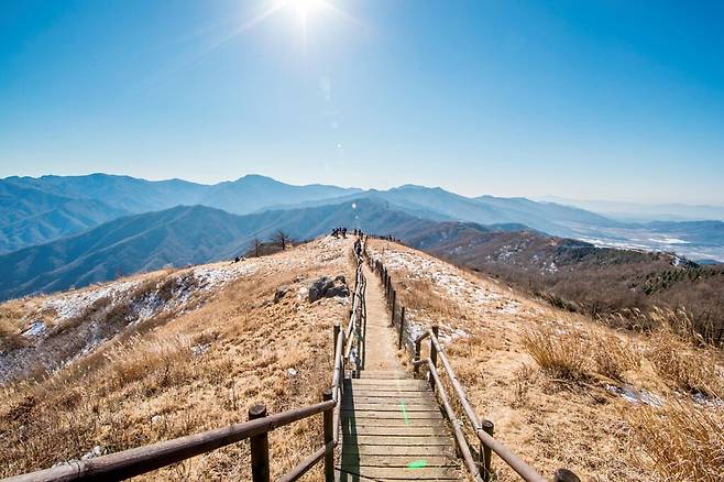 다만 겨울철에는 경사가 반복되는 구간에서 체력 소모가 커진다. 눈이 쌓일 경우 미끄럼 위험이 있어 아이젠과 등산 스틱이 필요하다.