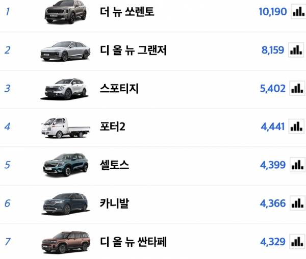 현대차 완전변경 싼타페가 하이브리드 파워트레인 없이 2.5터보 단일 사양으로만 판매가 시작된 9월 4329대로 기염을 토했다. 전월 쏘렌토 판매량의 65%가 하이브리드 트림이다. 2.5터보가 2천여대에 그친 것과 비교하면 두 배 높은 수치다.