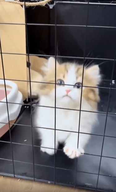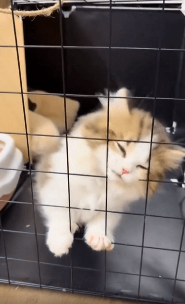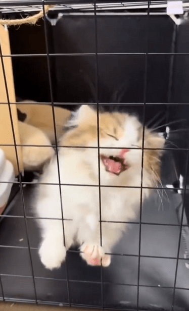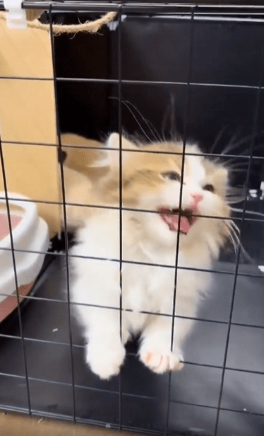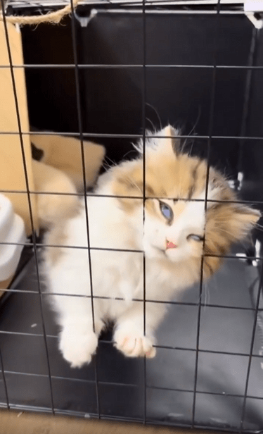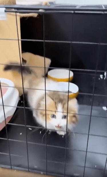 그리고 그다음 순간, 고양이는 철창 사이로 얼굴을 천천히 내밉니다.