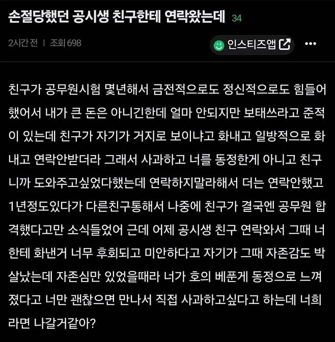 손절 당했던 공시생 친구한테 다시 연락 받은 사람