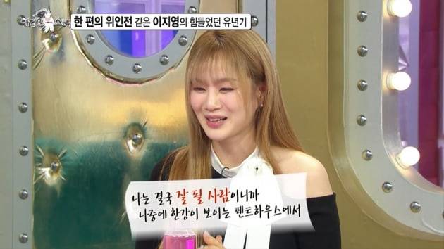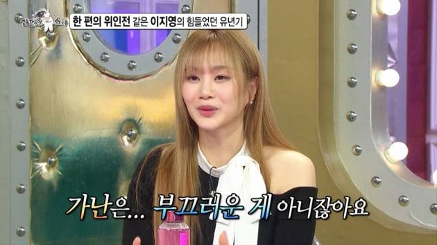 이지영은 "제가 가난한 게 잘못은 아니지 않나. 가난은 부끄러운 게 아니다. 불편하지만 부끄러운 게 아니라고 생각했다"며 긍정적 사고방식을 드러냈다. 그러면서 "항상 일기를 썼다. 나는 잘될 사람이고 한강이 보이는 펜트하우스에서 슈퍼카 타고 와인바를 차려놓으면서 살 거라고 일기를 썼다. 저를 보고 금수저만 성공한다는 인식을 깨고 어려운 환경이어도 잘할 수 있다는 생각을 했으면 좋겠다"고 강조했다.