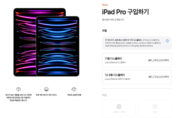 다만 환율 영향 때문에 국내 출시 가격이 크게 올라 아이패드 프로 11 Wi-Fi 모델 가격이 124만 9천원부터, 셀룰러 모델 가격은 148만 9천원부터 시작하며, 아이패드 프로 12.9 Wi-Fi 모델은 172만 9천원, 셀룰러 모델은 196만 9천원부터다.