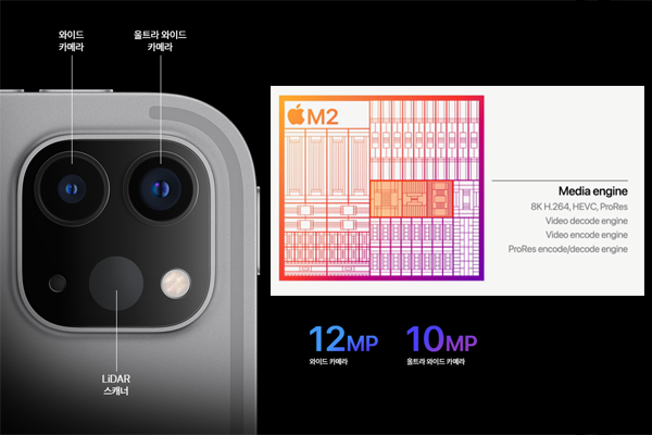 새로운 아이패드 프로 11(4세대) 및 12.9(6세대)에는 애플이 올해 6월 선보인 신형 맥북 에어(MacBook Air)와 맥북 프로 13 (MacBook Pro 13)에 들어갔던 M2 칩을 탑재했다.