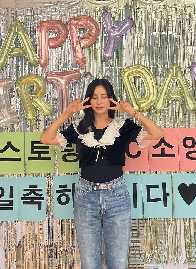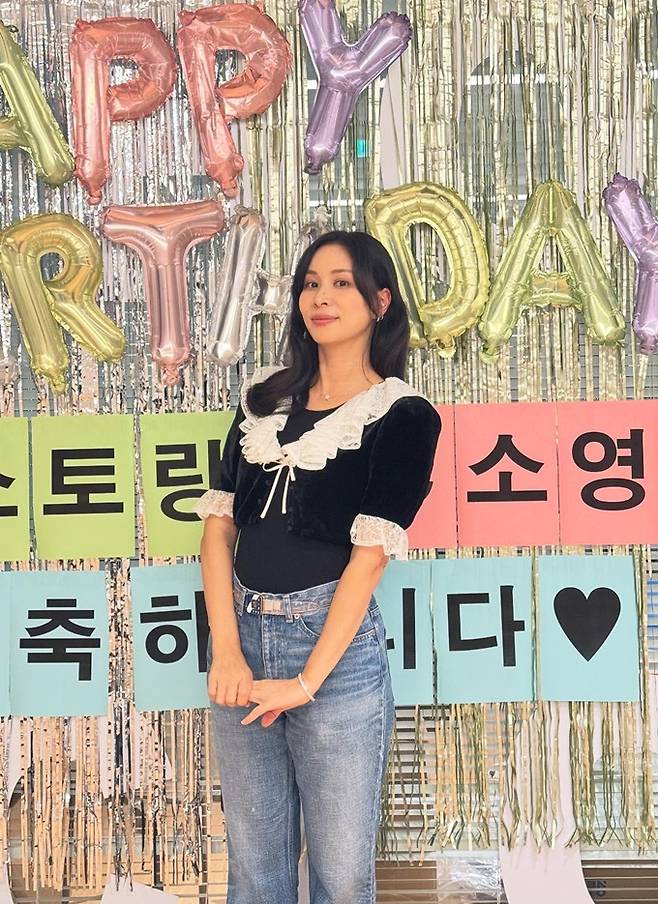 공개한 사진에서 고소영은 네크라인과 소매 끝에 풍성한 화이트 레이스 디테일이 들어간 블랙 벨벳 퍼프 블라우스에 은은한 워싱의 와이드 데님 팬츠를 매치한 생일파티룩으로 우아하면서도 로맨틱한 귀여운 매력을 발산했다.