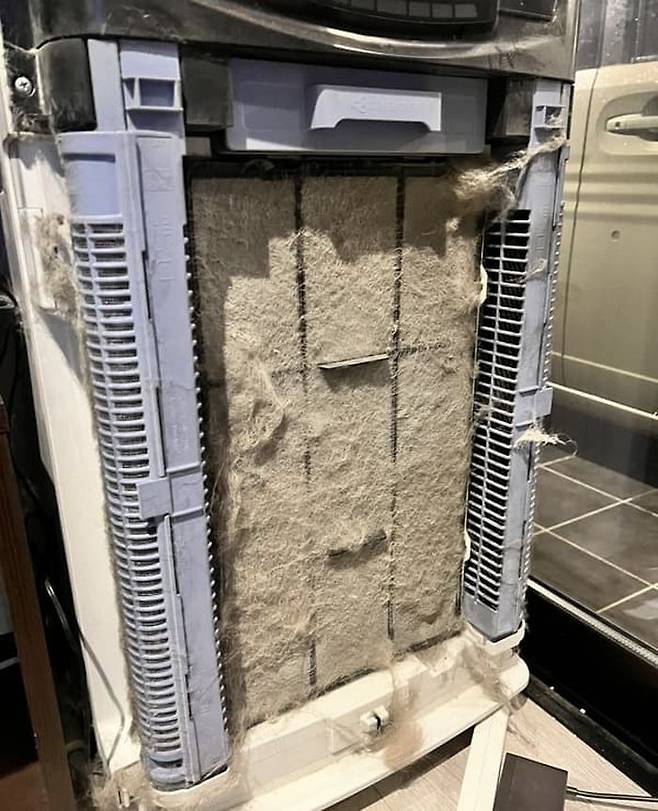 공개된 사진 속에는 고양이들의 털들이 빽빽하게 박혀 있어서 빈틈조차 찾아보기 힘들 정도의 공기청정기 필터 상태가 담겨 있어 할 말을 잃게 하는데요.