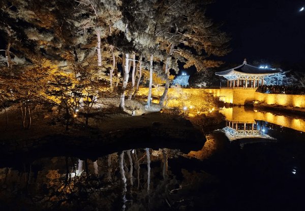 경주에서 봄밤의 낭만을 제대로 느끼고 싶다면 동궁과 월지를 추천합니다. 신라 시대 왕궁의 별궁 터였던 이곳은 연못과 고대 건축물의 조화가 아름다운 곳인데요. 특히 봄철에는 주변에 벚꽃과 각종 봄꽃이 어우러져 환상적인 야경을 만들어냅니다. 해질 무렵부터 조명이 켜지면서 동궁과 월지의 운치는 더욱 깊어지며, 낮과는 또 다른 경주의 매력을 만날 수 있습니다.