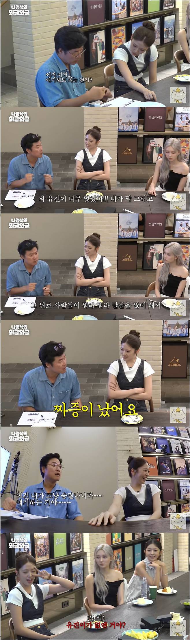 나영석PD는 "유진이 '골든' 커버하는 걸 저도 봤다. '유진이 너무 멋있다' 하면서 너무 기뻐서 봤는데 사람들이 뭐라 뭐라 말들을 많이 해서 짜증이 났다"고 솔직히 말했다. 이에 장원영은 "나는 뭐라뭐라 말이 있는지도 몰랐다"고 놀랐고 나영석PD는 "내가 성질 나니까 얘기하는 거다"라고 밝혔다.