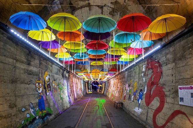 옛 철도 터널을 개조해 만든 이곳은 오미자향이 가득한 환상의 문경 가볼 만한 곳, 바로 문경오미자테마터널입니다. 최근까지 내부 공사로 문을 닫고 있었다가 더욱 화려하고 멋있어진 모습으로 재개장 하였는데요.