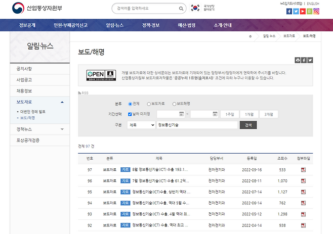 또 하나 중요한 게 있죠. 메모리반도체 가격과 수출금액을 확인하는 방법입니다. 산업통상자원부가 보도자료를 통해 매달 정보통신기술(ICT) 수출 지표를 발표하고 있습니다. 메모리반도체 수출 뿐 만 아니라 비메모리반도체(=시스템반도체) 수출 금액까지 세부적으로 발표합니다. 이것이 가장 정확한 숫자입니다.