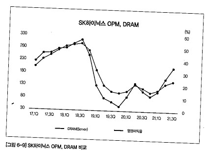 위 그래프를 보면 SK하이닉스 OPM(영업이익) 추이 역시 DRAM 가격과 동행성을 보이고 있습니다.