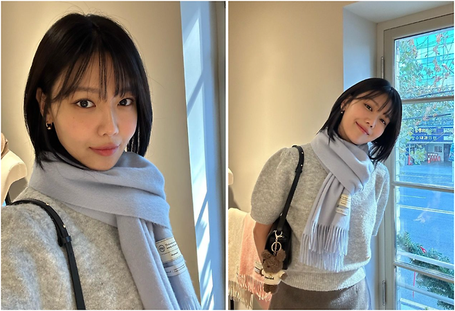 수지가 착용한 머플러/목도리는