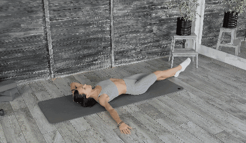 매트에 등을 대고 누운 상태에서 시작합니다. 오른손은 옆으로 펼치고, 왼손은 머리 옆으로 가져갑니다. 오른쪽 다리를 공중으로 들면서 상체를 틀어 일으킵니다. 반대 방향으로 반복하세요.