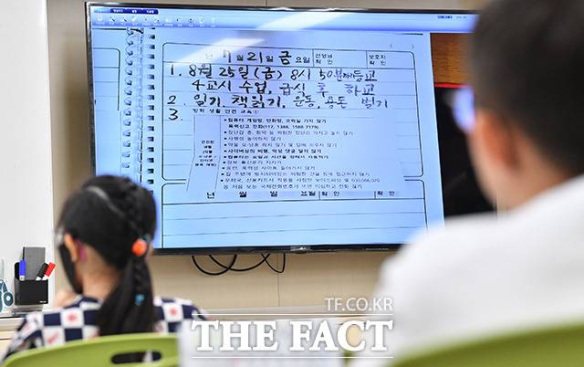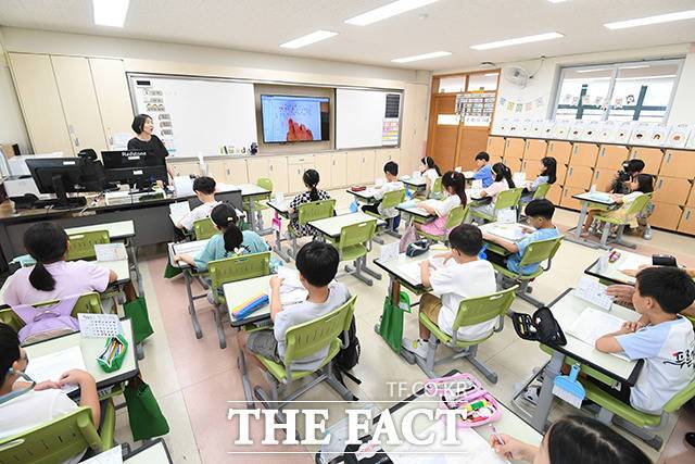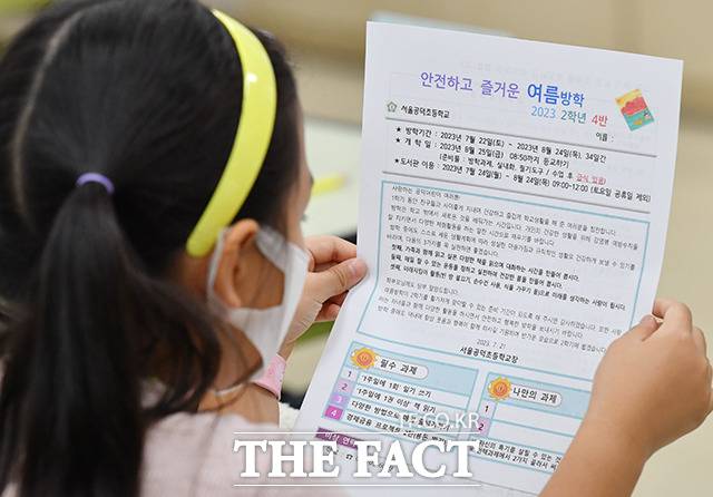 [더팩트ㅣ박헌우 기자] 여름방학이 본격적으로 시작된 21일 오전 서울 마포구 공덕초등학교에서 학생들이 여름방학 생활에 대한 이야기를 선생님께 듣고 있다.
