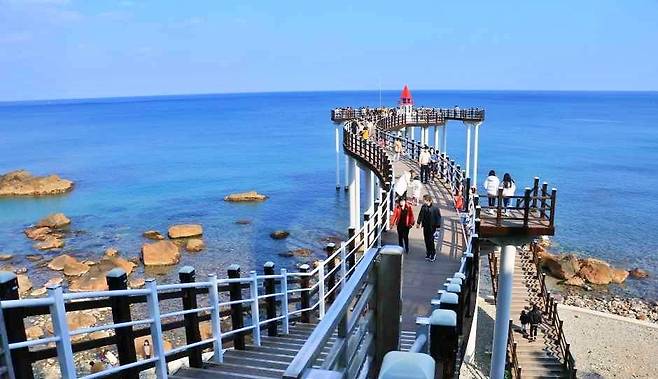 이가리 닻 전망대는 높이 약 10m, 길이 102m 규모로 조성돼 있다. 구조물 위를 따라 천천히 걸어가면 발아래로 펼쳐지는 푸른 바다와 주변 해안선이 한눈에 들어온다.