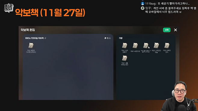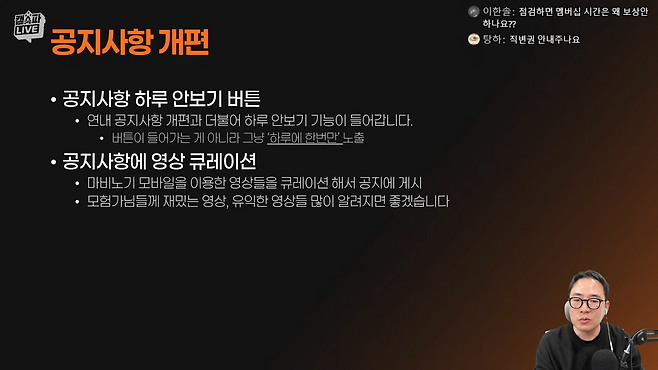#. 공지 사항 개편 - 공지 사항 하루 동안 안보기 버튼 추가 - 공지 사항에 영상 큐레이션 추가 - 스킬별 룬 리스트 UI 시스템 개편 ㄴ인게임 내에서 실제 룬 적용 스킬을 영상으로 볼 수 있도록 추가 - 룬 일괄 승급 11월 27일 추가
