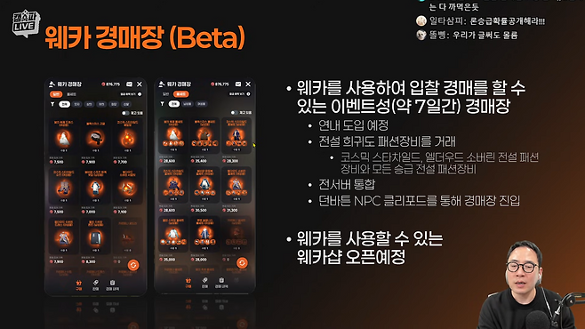 #. 웨카 경매장 추가 - 전 서버 통합 경매장으로 일정 기간 이벤트 형식으로 추가 - 전설 패션 장비 등을 거래 - 웨카샵은 연내 정비해서 공개 예정