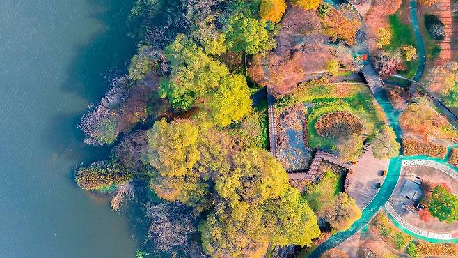 사계절 언제나 아름답지만, 신정호수공원이 가장 빛나는 순간은 단풍이 물드는 가을입니다.