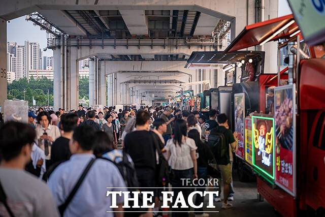 [더팩트ㅣ장윤석 기자] '2025 서울관광 푸드 페스티벌'이 지난달 31일 오후 서울 서초구 잠수교 일대에서 열린 가운데 외국인 관광객과 시민들이 즐거운 시간을 보내고 있다.