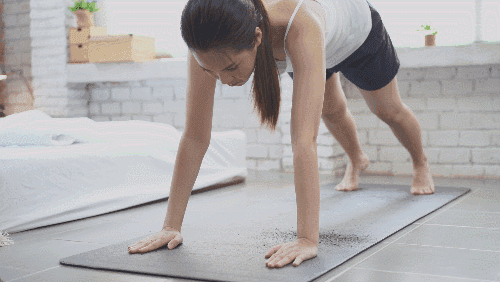 매트 위에서 플랭크 기본자세로 엎드린 뒤, 팔은 곧게 펴고 시선은 바닥을 향합니다. 복부에 힘을 주며 오른쪽 무릎을 왼쪽 팔꿈치 방향으로 당겼다가 원위치로 되돌립니다. 이어서 왼쪽 무릎을 오른쪽 팔꿈치 방향으로 당겼다가 되돌립니다.