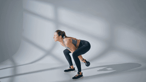 바닥에 서서 다리를 어깨너비로 벌리고, 양손으로 케틀벨 손잡이를 잡습니다. 케틀벨을 다리 사이로 내리며 엉덩이를 뒤로 빼고 무릎은 자연스럽게 살짝 굽힙니다. 엉덩이와 허벅지의 힘으로 몸을 밀어 올리며, 케틀벨을 골반의 반동으로 가슴 높이까지 스윙합니다.