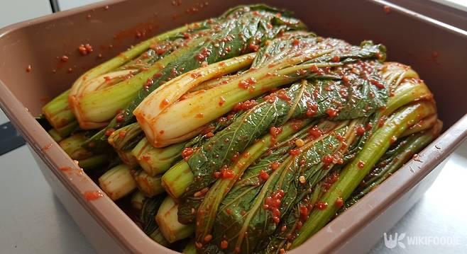 향이 강하고 매운맛이 도는 갓김치는 호불호가 갈리는 김치다. 하지만 잘 담근 갓김치는 밥도둑 그 자체다. 갓 특유의 알싸한 맛과 액젓의 깊은 감칠맛, 여기에 단맛을 더하는 사과주스가 조화를 이루면 밥 한 공기가 순식간이다.