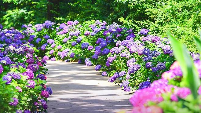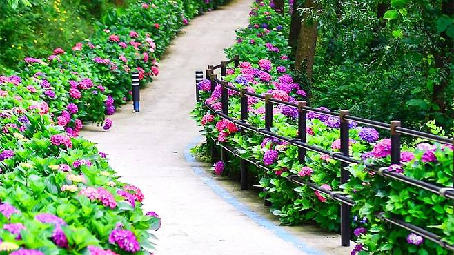 수국이 만개한 이 길은 단순한 산책로를 ‘인생샷’ 명소로 바꾸며, 여행자들의 마음을 사로잡고 있다. 자연과 사람의 손길이 함께 어우러진 이곳은 지금, 가장 빛나는 순간을 맞고 있다.