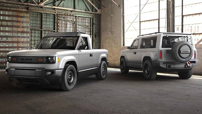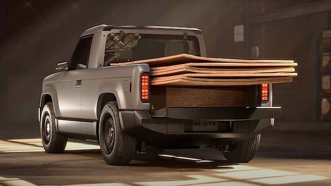 슬레이트라는 이 회사에서 공개한 픽업트럭은 사이즈로 보면 콜로라도보다는 많이 작은, 소형 일렉트릭 픽업이다. 소형 해치백만 한 크기이며, 당연히 현재 미국에서 판매 중인 중, 소형 픽업트럭보다 짧고 낮다. 적재 공간은 1.5m 정도인데, 프렁크까지 있어서 이 사이즈에서 기대하는 것 이상의 적재 용량은 갖고 있다.
