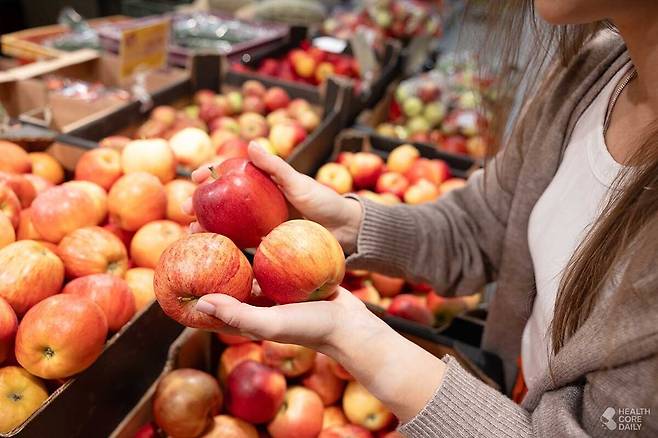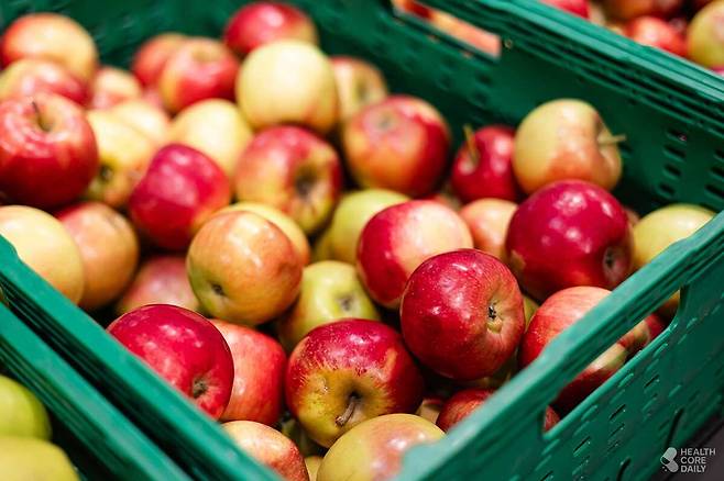 비타민C, 식이섬유, 칼륨, 폴리페놀 등 필수 영양소가 풍부한 사과는 껍질에 퀘르세틴이 많아 세포 손상 진행을 늦추고 혈액 흐름을 원활하게 한다. 펙틴은 혈중 콜레스테롤을 낮추고 장의 활동을 촉진해 변비 개선에 도움을 준다. 또한 포만감이 오래 지속돼 과식을 줄이고 체중 관리에도 유리하다.